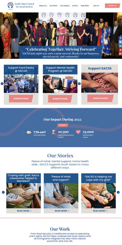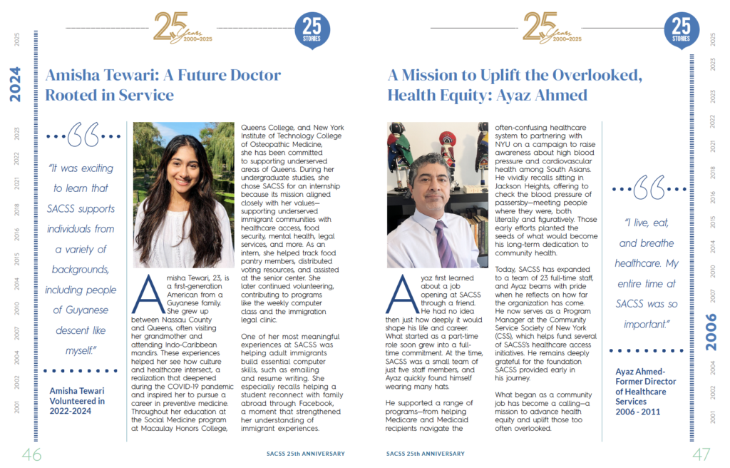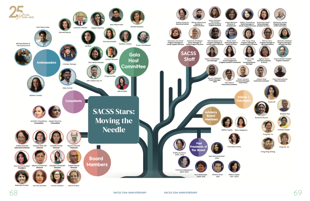 SACSS is a trusted community institution serving New Yorkers since 2000. With over 1,000,000 people supported through healthcare access, food security, mental wellness, and social services, we continue to stand at the frontlines of community care. Our tree symbol reflects this commitment—rooted in culture, strengthened through support, and growing opportunities for every individual we serve.